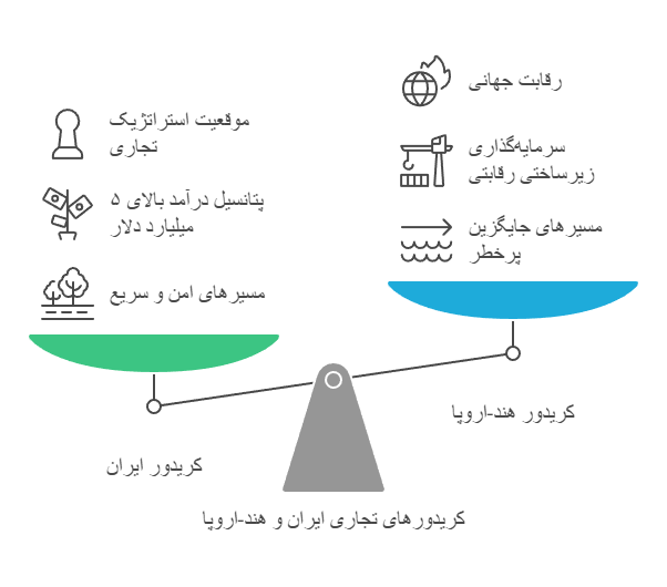 – رقابت با کریدورهای رقیب: این طرح مستقیماًش با پروژههایی مانند «کریدور هند-اروپا» (از طریق اسرائیل و امارات) رقابت میکند. پیروزی در این رقابت، ایران را به قلب تجارت اوراسیا تبدیل خواهد کرد.