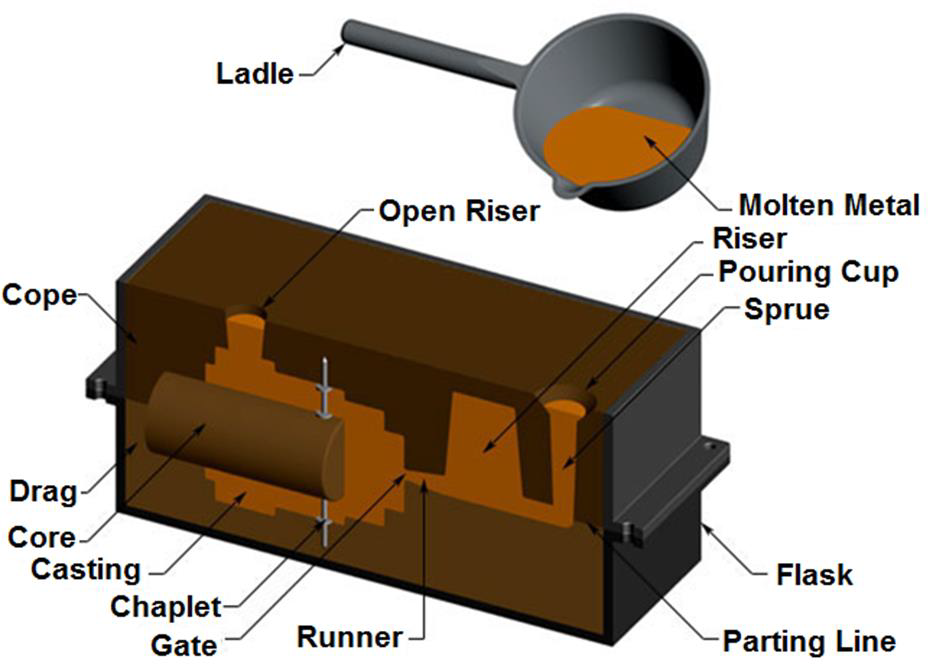 - Riser : یک حفره اضافی برای ذخیره مذاب اضافه برای جلوگیری از انقباض