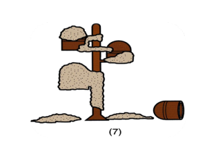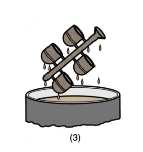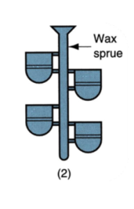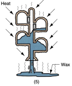 قالب به طور برعکس نگه داشته شده و حرارت داده می‌شود تا واکس ذوب شده و از حفره خارج می‌شود.
