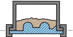 وقتی که فلز مذاب از یک ملاقه داخل سیستم راهگاهی ریخته و حفره ی قالب را پر می‌کند.قالب با احتیاط به هم متصل می‌شود.